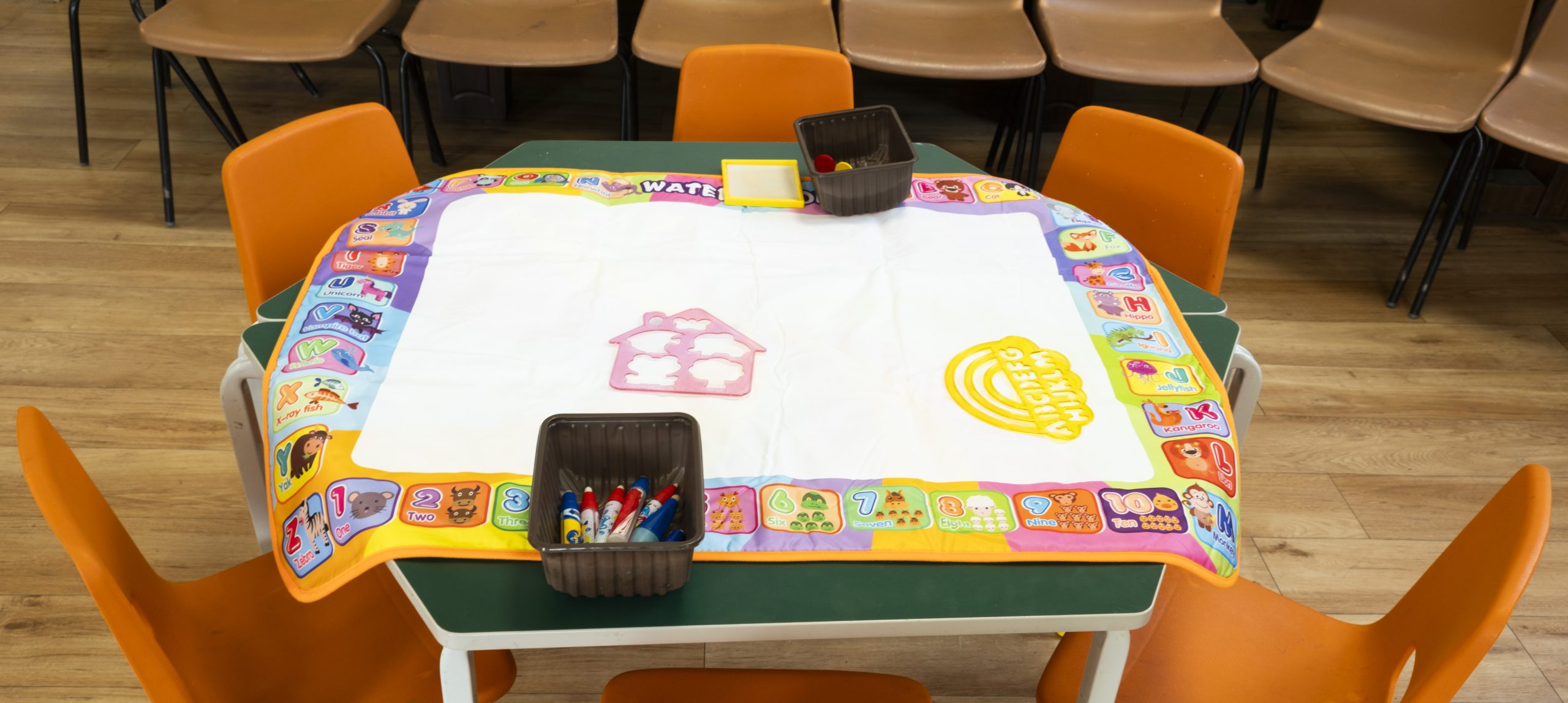 We have a variety of toys, designated baby area, plus a craft table where a different craft activity takes place each week. In the summer we have a secure outdoor area for play. The session also includes a song time and short children’s Bible talk followed by a snack time.
